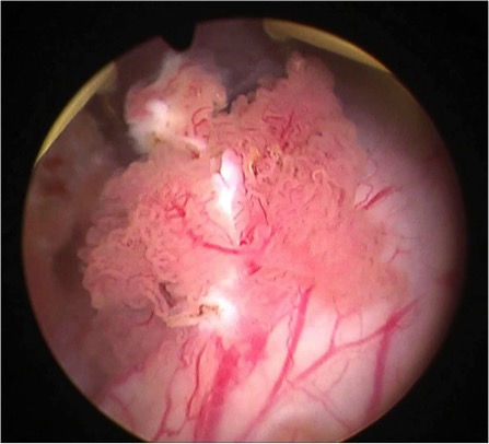 Il est important d'effectuer une cystoscopie (introduire une caméra dans la vessie par l'urètre) afin de confirmer ce diagnostic, ainsi qu'un scanner de l'arbre urinaire. Le premier traitement consiste à réséquer, au bloc opératoire et par les voies naturelles, les lésions vésicales afin de les traiter et surtout de les analyser. Cette intervention est appelée Résection Trans-Urétrale de Vessie et nécessite une hospitalisation de 3 jours.