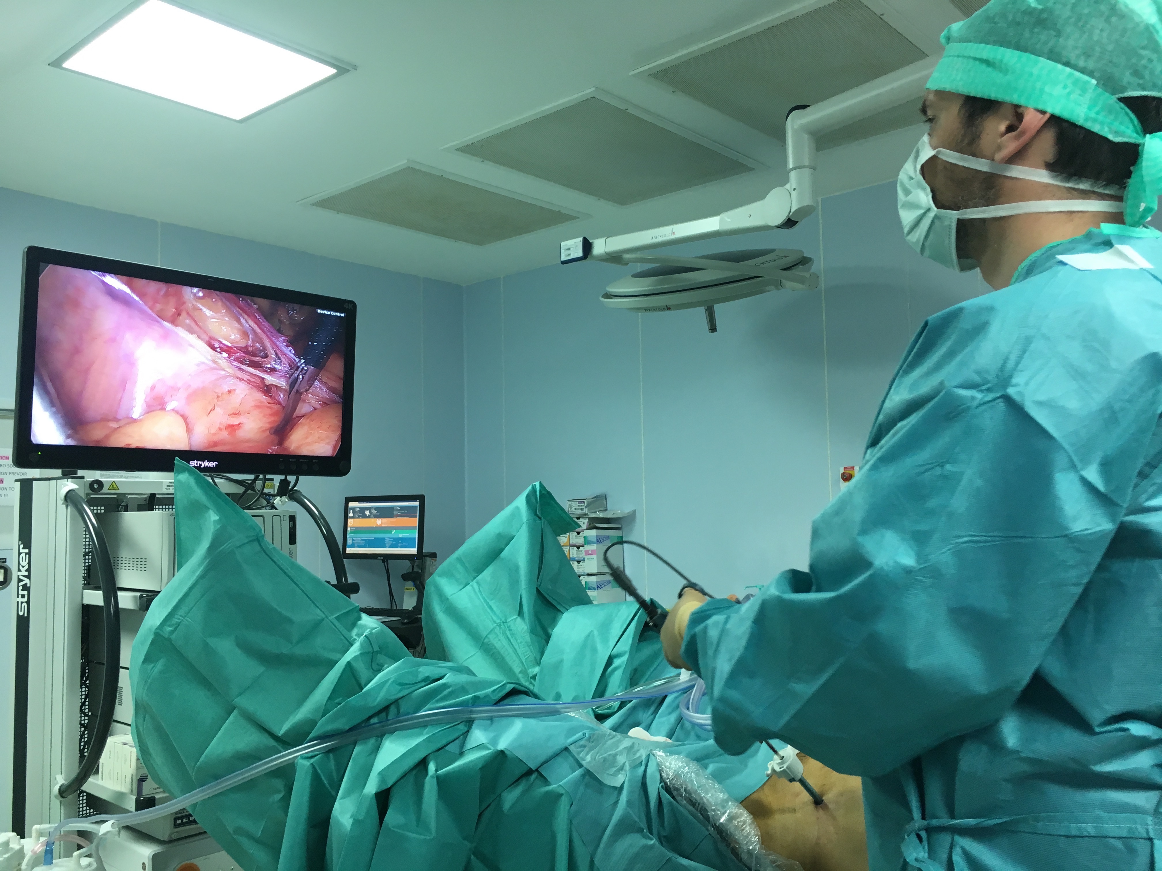 La prostatectomie totale consiste à retirer la glande prostatique située entre la vessie et l'urètre. Nous pratiquons cette intervention par voie mini-invasive en coelioscopie avec caméra 3D, ce qui permet une récupération et un confort post-opératoires plus importants. Les complications sont surtout fonctionnelles avec risque de dysfonction érectile dans la majorité des cas et d'incontinence urinaire dans 5 à 10% des cas. Ces 2 complications sont bien sûr prises en charge par votre urologue pour retrouver rapidement votre qualité de vie. L'hospitalisation est de quelques jours. La chirurgie coelioscopique n'est parfois pas envisageable, de par les antécédents du patient ou la nature de sa tumeur, la voie ouverte (avec cicatrice sous-ombilicale) doit alors être discutée.
